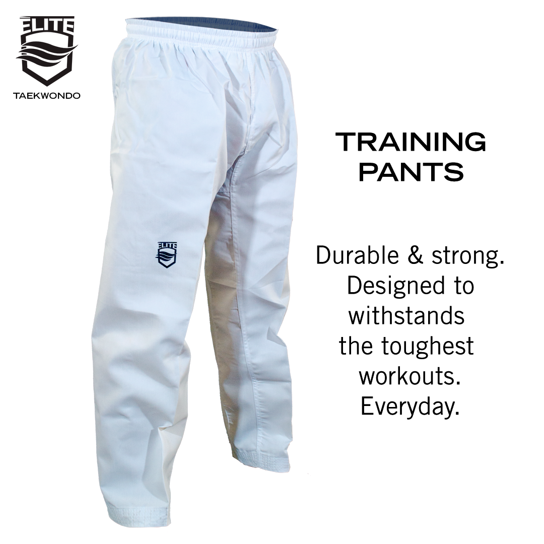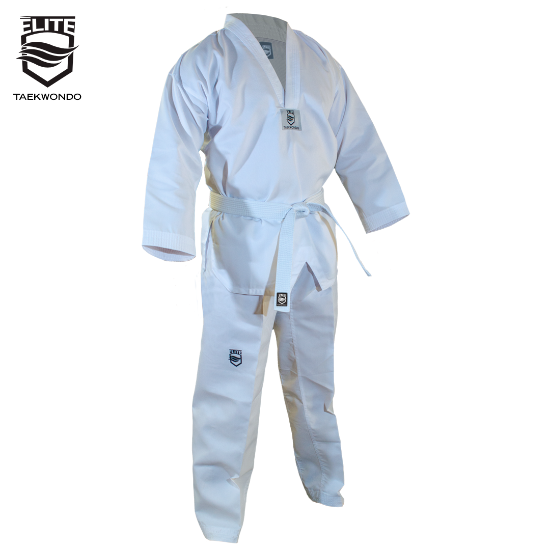 El dobok de taekwondo clásico ELITE de cuello blanco ofrece comodidad y rendimiento superiores.