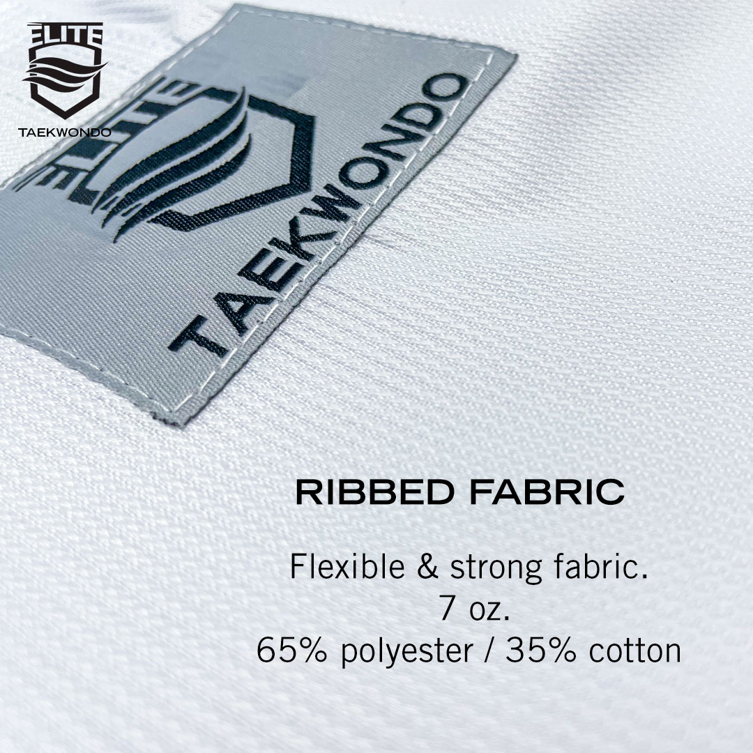 DOBOK DE TAEKWONDO CLÁSICO DE CUELLO BLANCO – TEJIDO ACANALADO PREMIUM
