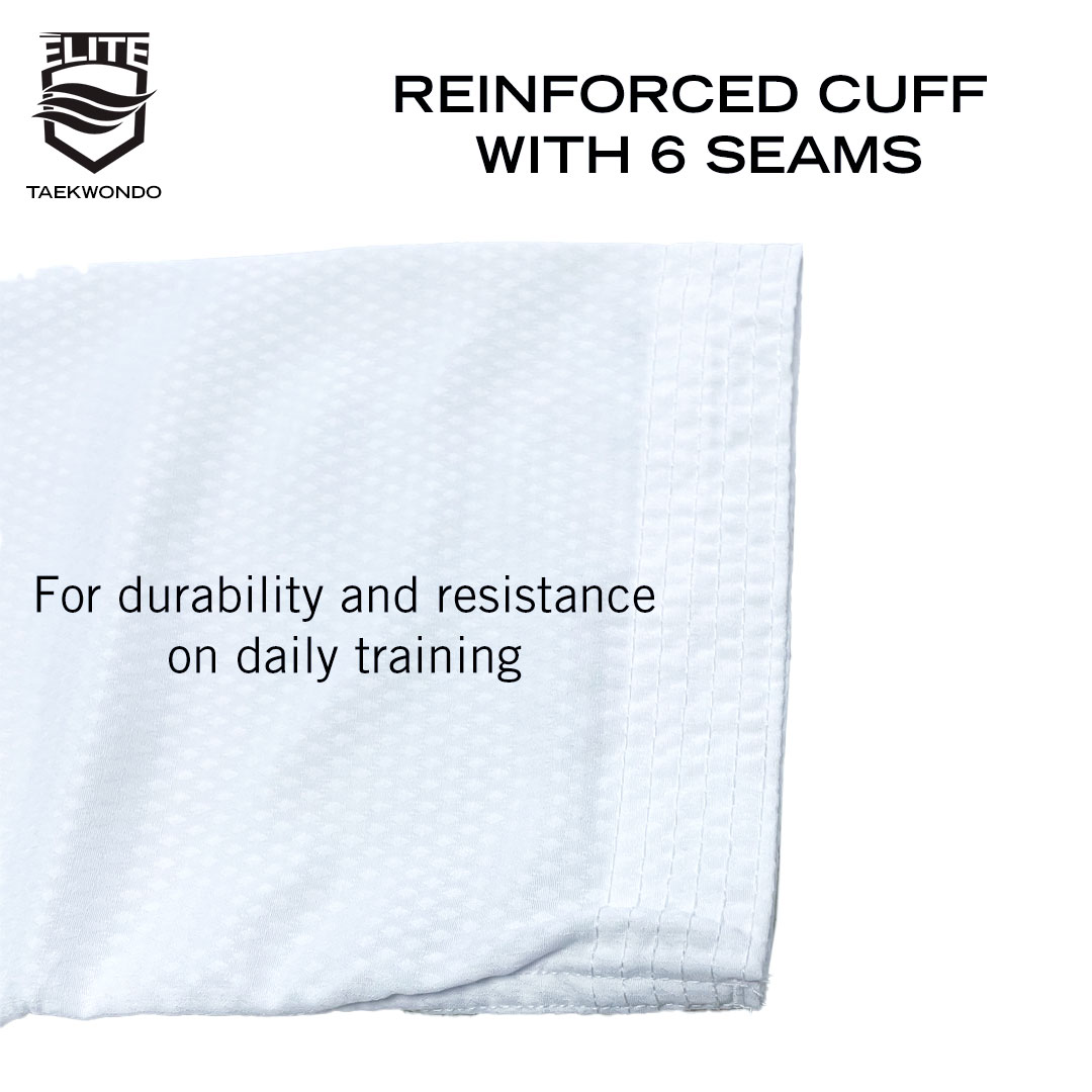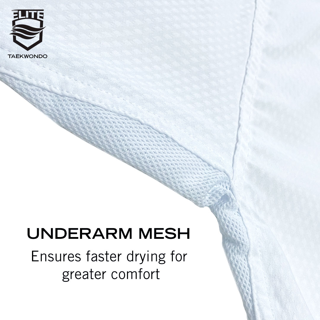 El dobok de taekwondo ELITE ofrece una comodidad y un rendimiento excepcionales. Con un tejido ligero y paneles de malla transpirable, este uniforme garantiza una ventilaci贸n y una movilidad 贸ptimas. Perfecto para entrenamientos y competiciones intensas.